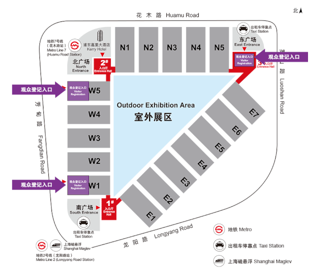?3號東入口大廳,位于花木路與羅山路交叉口,可直接通往N5及E7館。